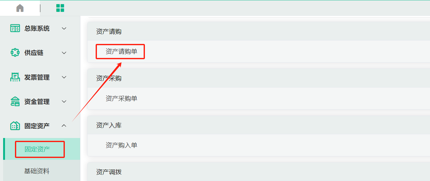 当公司的某个部门或某位员工需要请购资产时,则可登打资产请购单进行资产的购买请求。资产请购单可转至资产采购单作后续的固定资产维护转入动作。