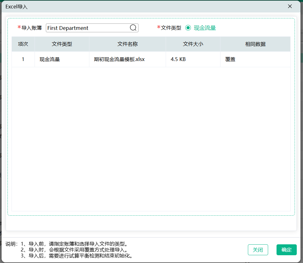 (7)现导入期初数据,会直接将已存在的数据进行覆盖,请谨慎操作。