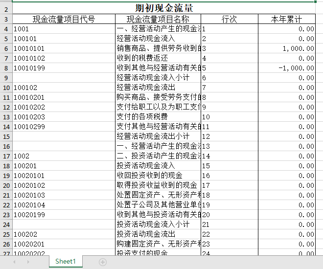 (3)选择“导出EXCEL”,是直接导出期初现金流量页面的所有内容。