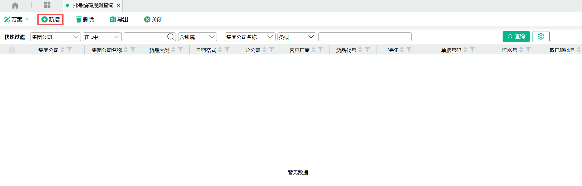 1、新增批号编码规则