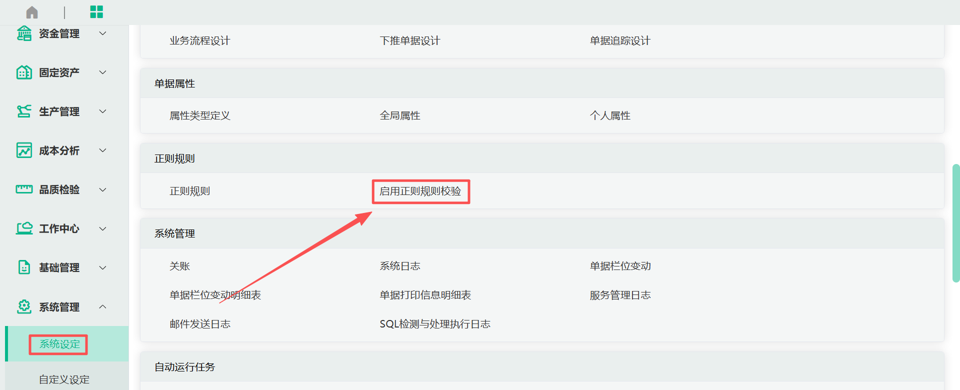 菜单位置:系统管理-系统设定-正则规则-启用正则规则校验