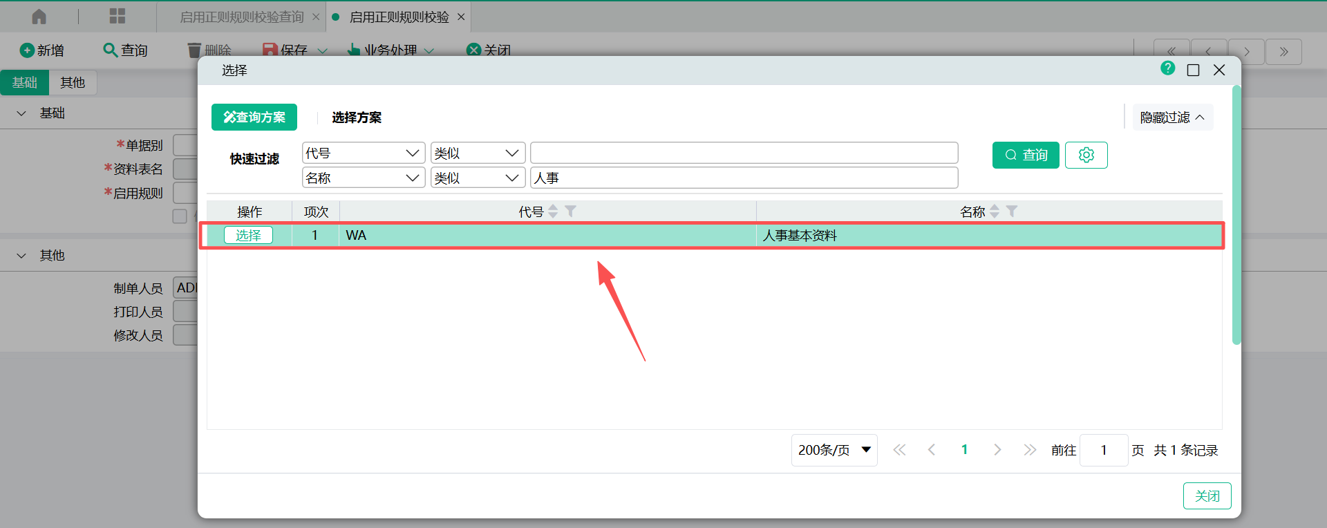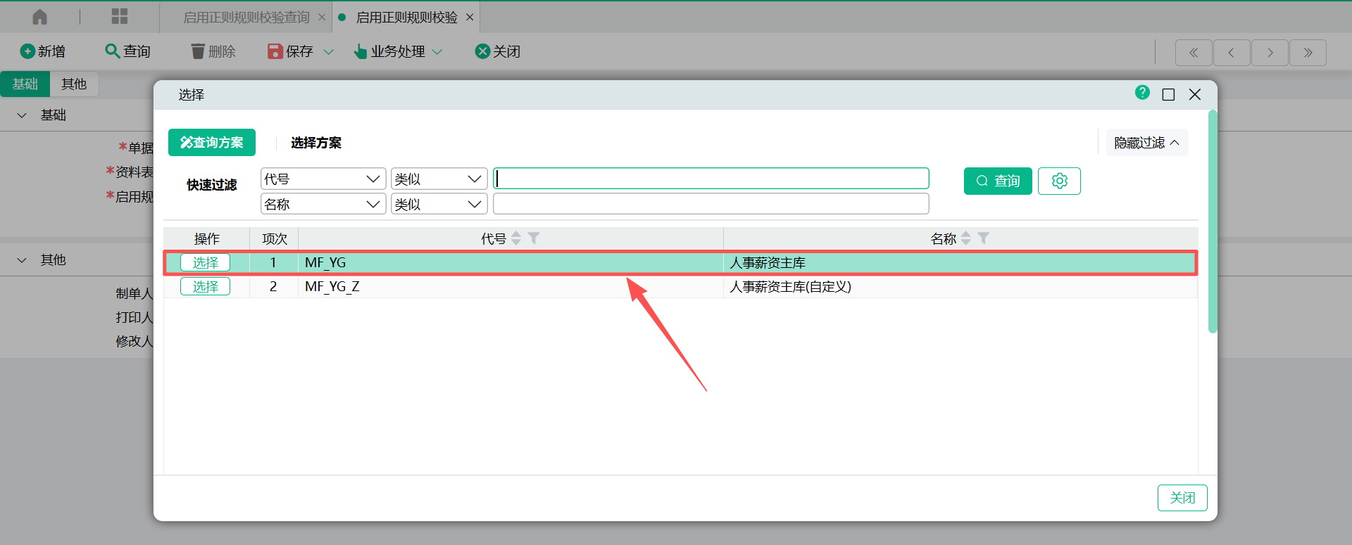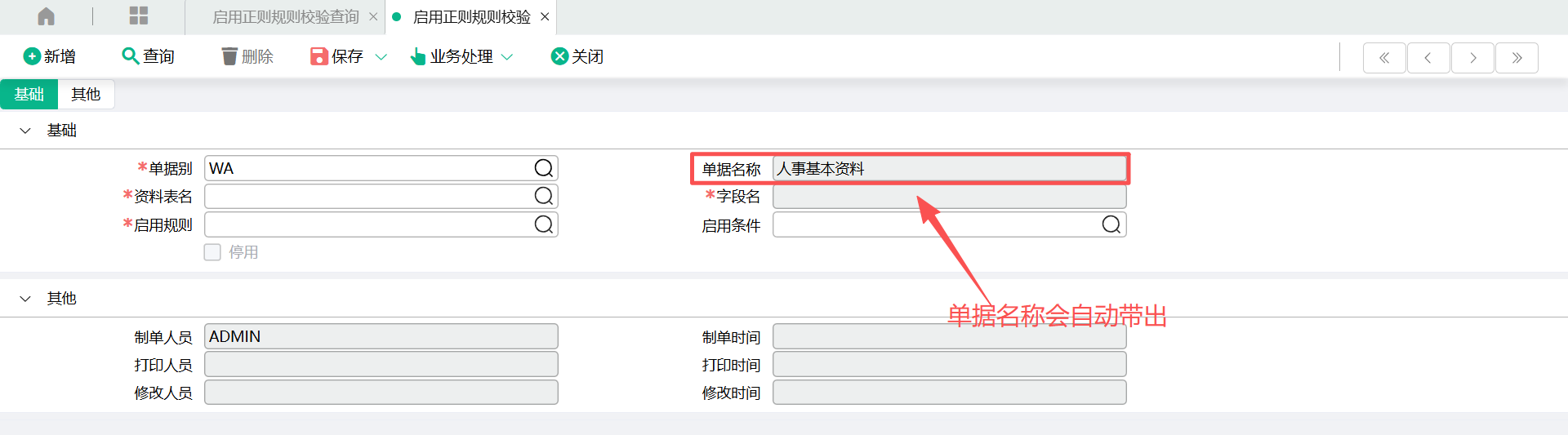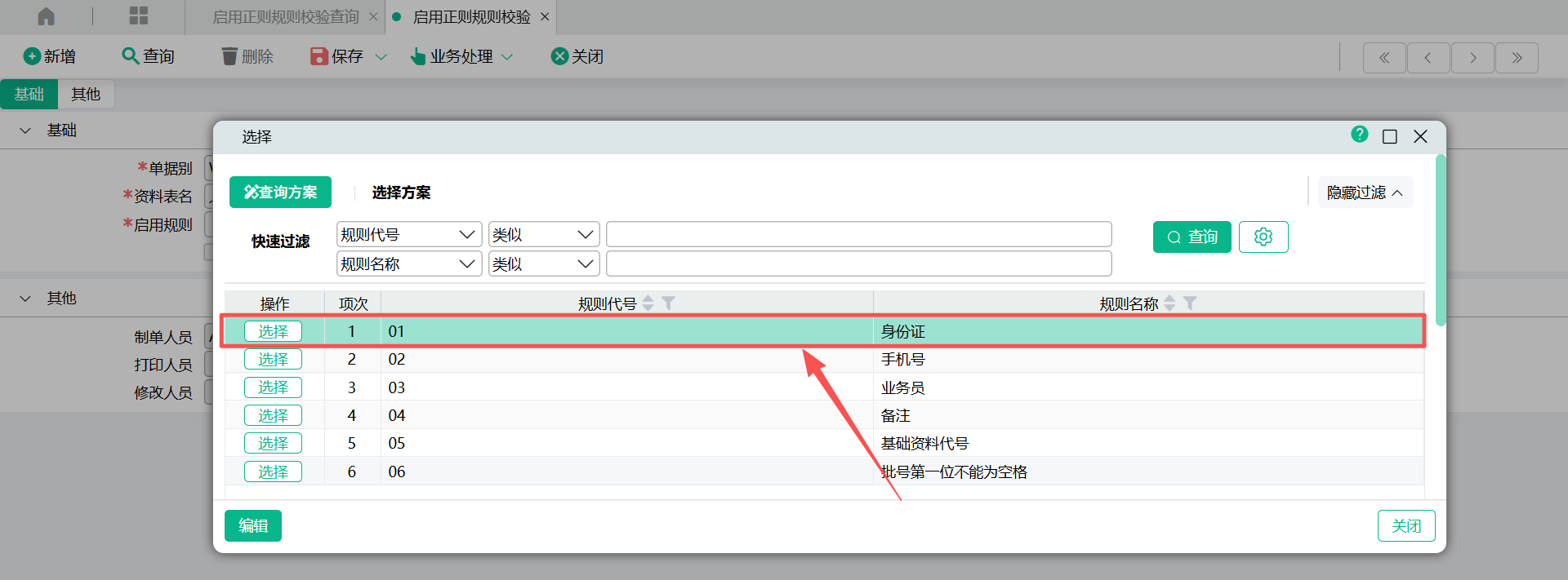 (2)进入“启用正则规则校验”查询画面,点击“新增”按钮