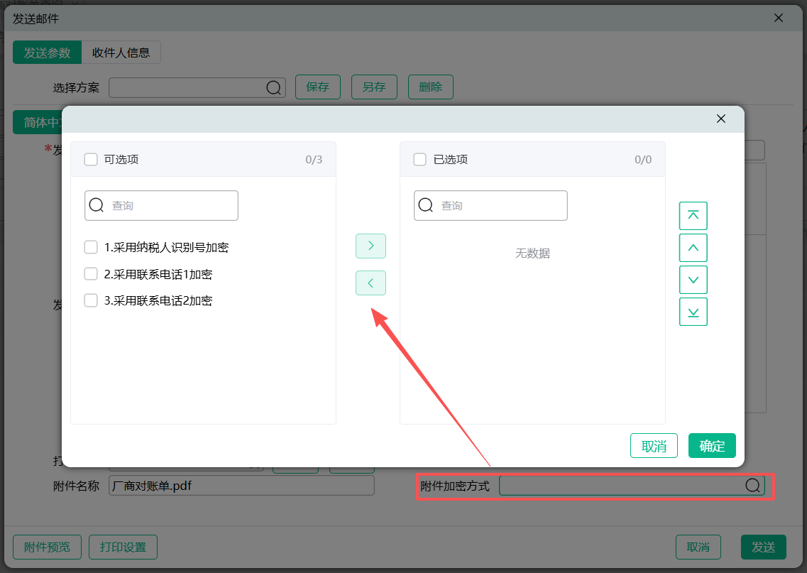 (4)对于发送的附件,可设置加密方式,点击【附件加密方式】选择加密方式。