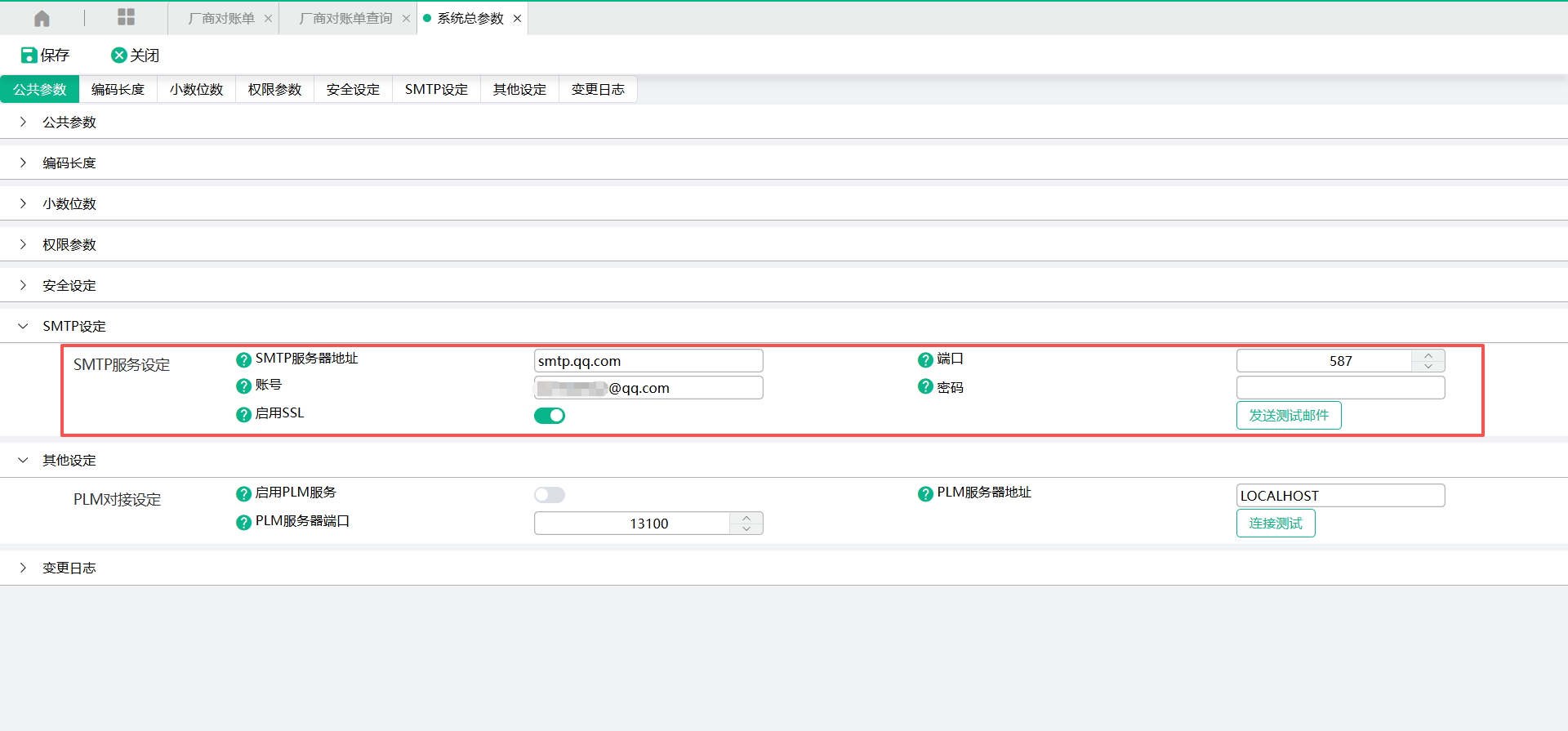 (2)需要实现发送邮件功能,请在【系统设定】-【系统总参数】中完成SMIP设定。