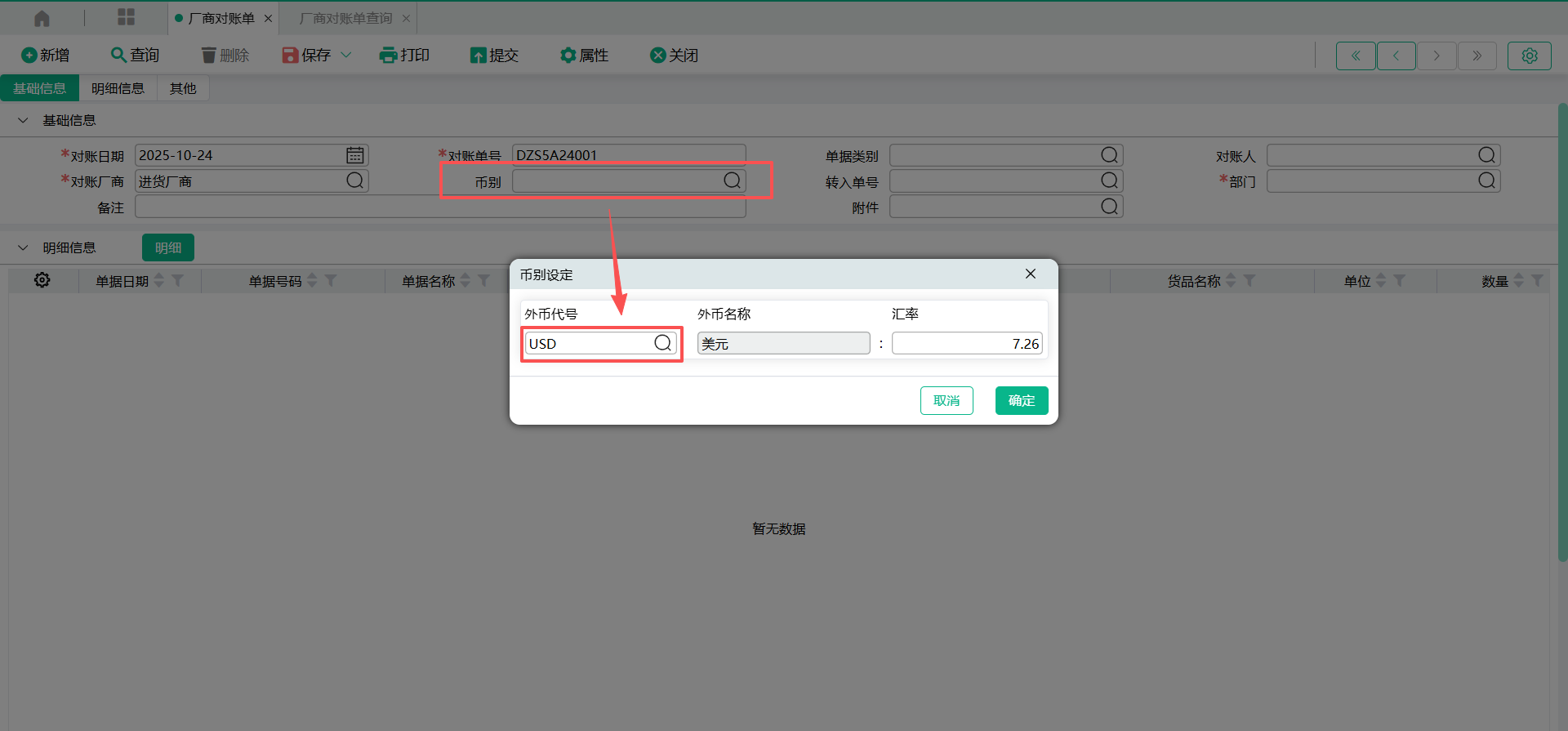 3、新增外币对账单