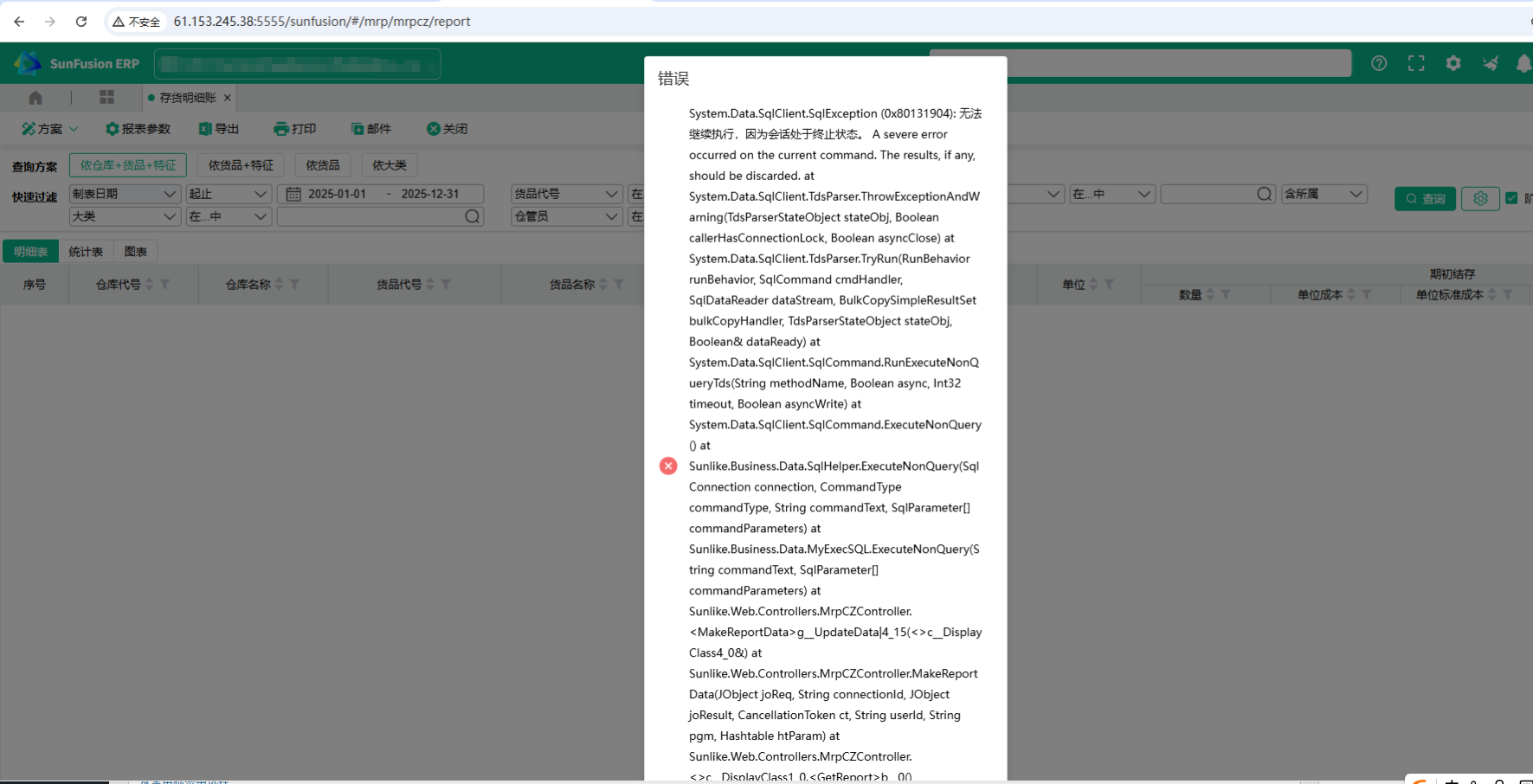 问题描述:在SQL Server 2019 运行系统,提示System.Data.SqlClient.SqlException (0x80131904) … A severe error occurred on the current command 错误。