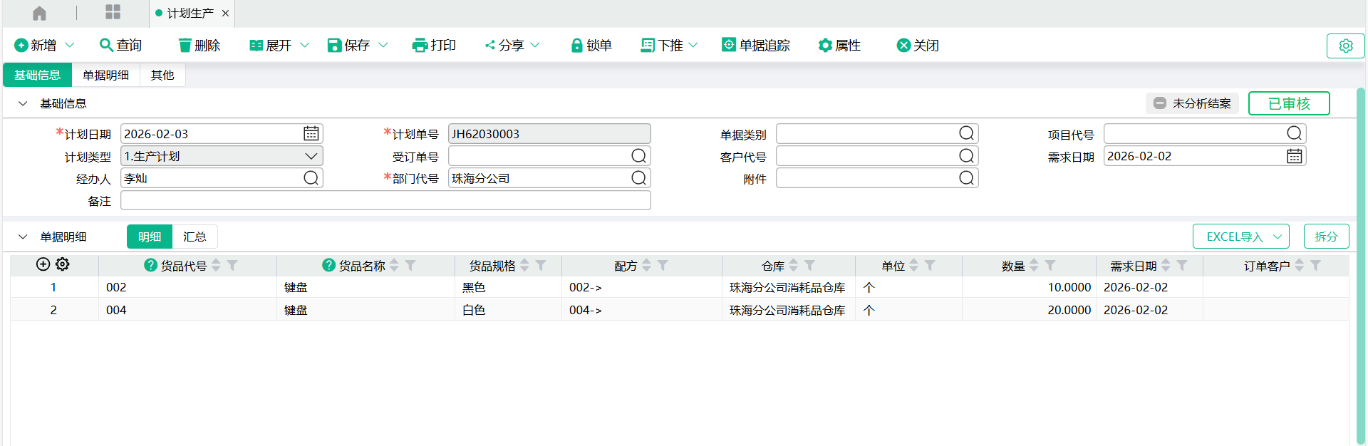 | 受订单号 | 系统根据编码原则自动生成,也可手工修改。 |