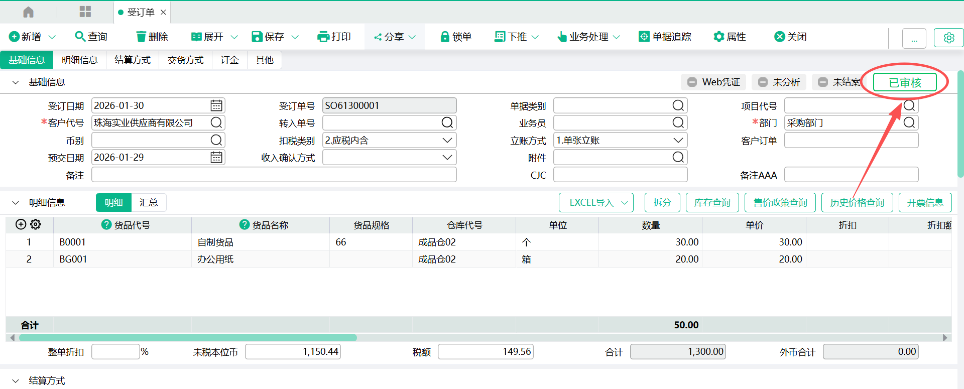 举例:以“受订单”为例说明