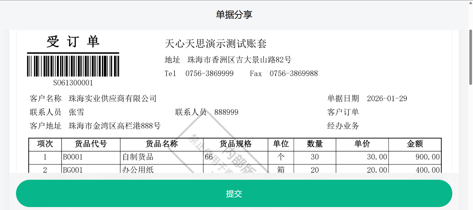 单据分享