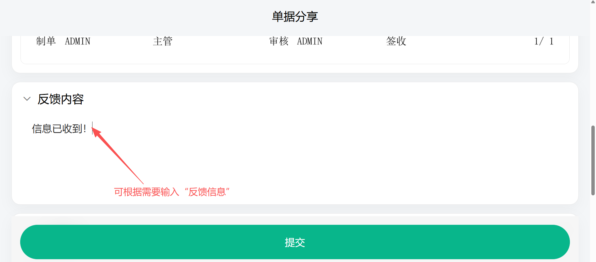 可提交:分享链接后,接收人可在链接中进行文字或图片的反馈
