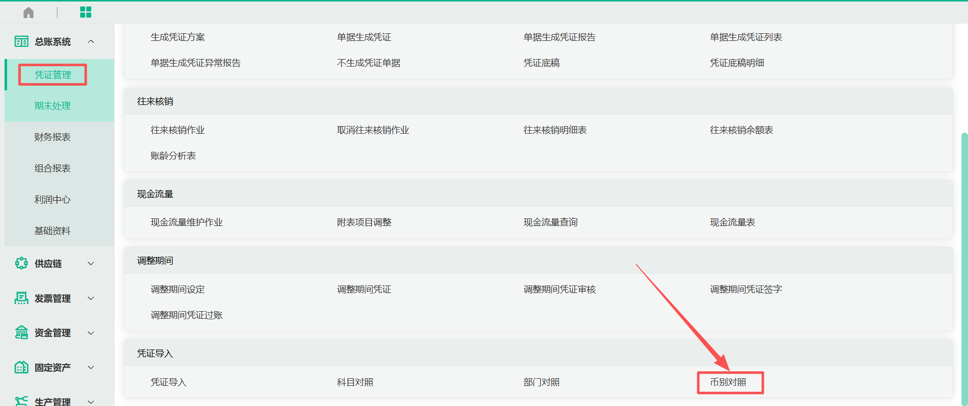 菜单位置:总账系统——凭证管理——凭证导入——币别对照