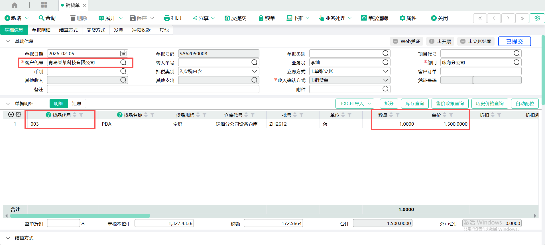 菜单位置:供应链——销售管理——销货管理——销货单