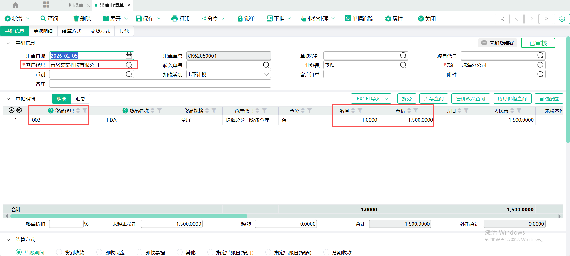 3、转入 【出库申请单】