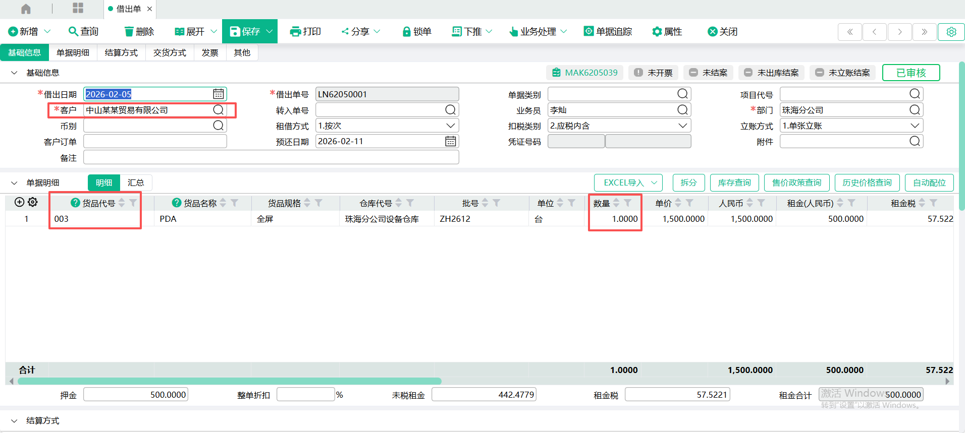 4、转入 【借出单】