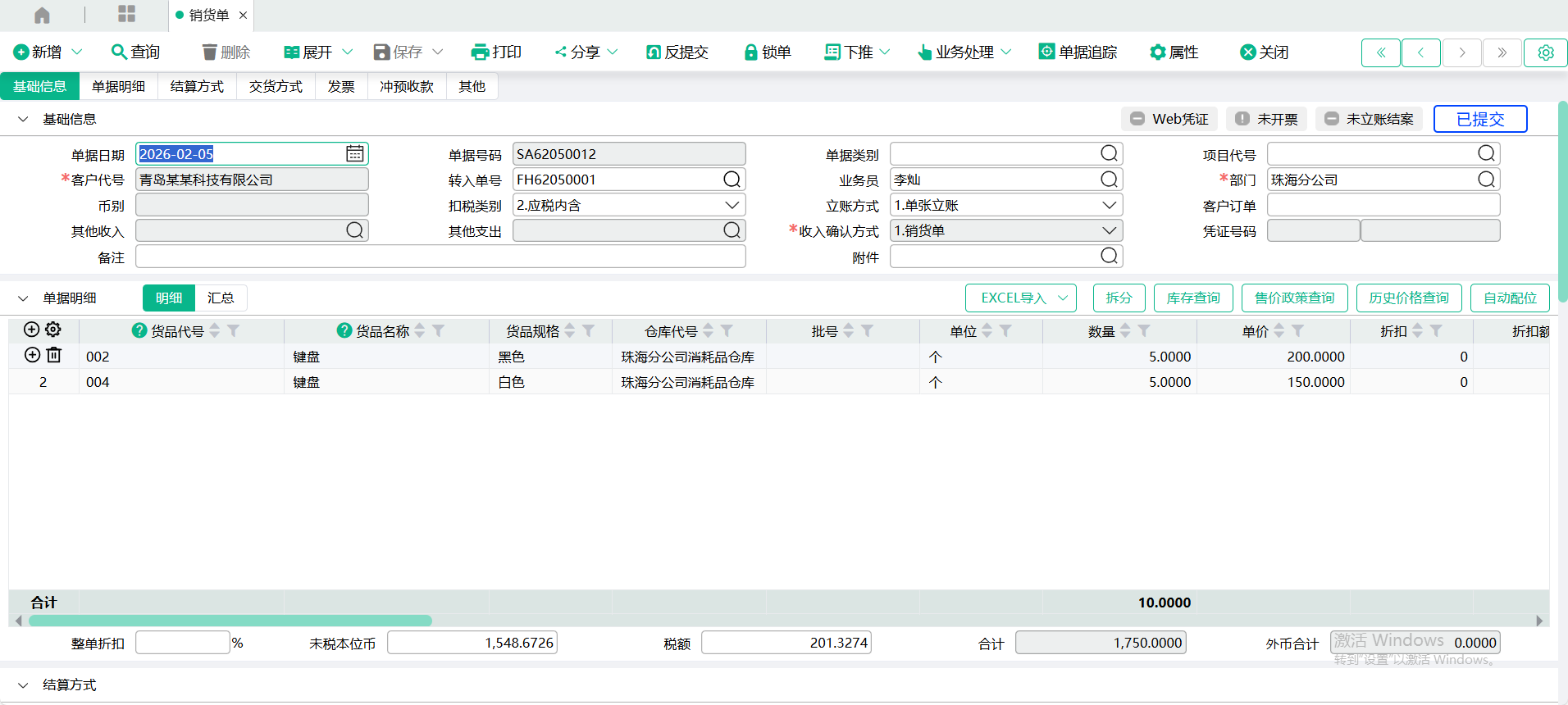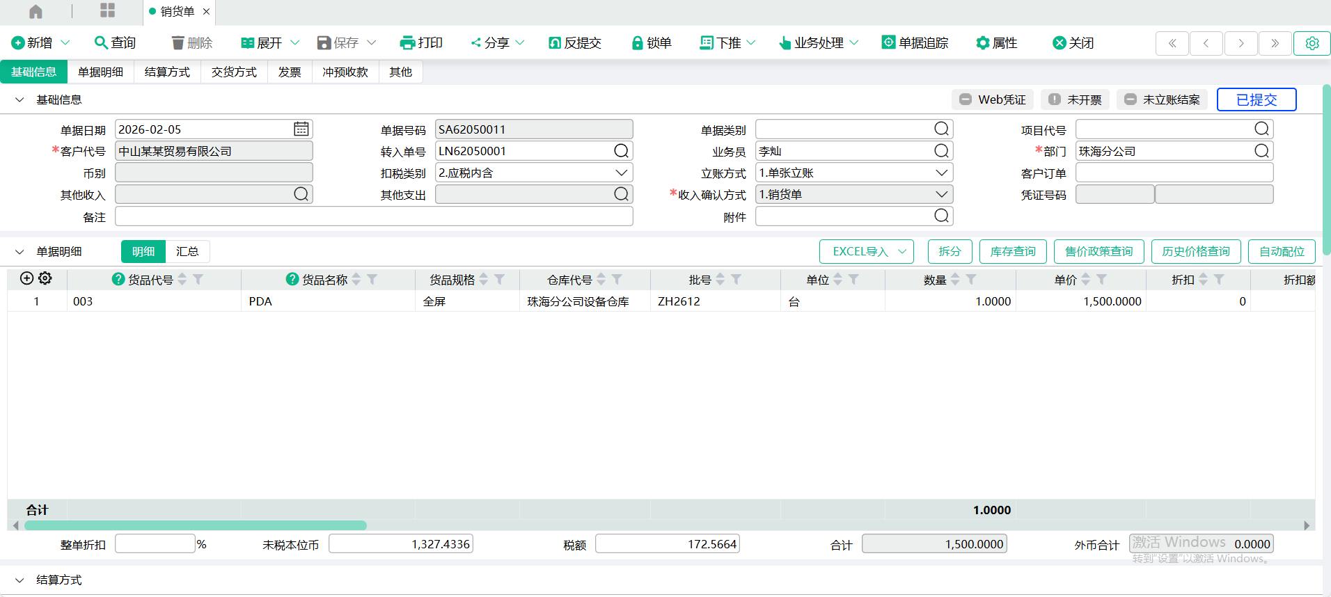 2.不立账:单据保存后,不会在收付账款系统中产生应收账款;