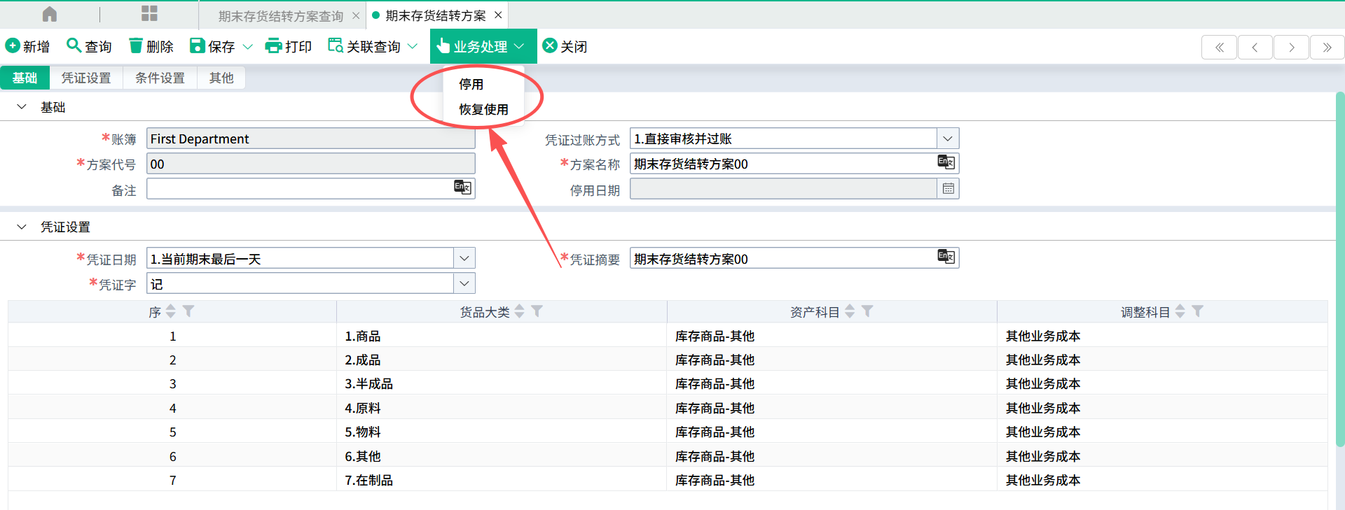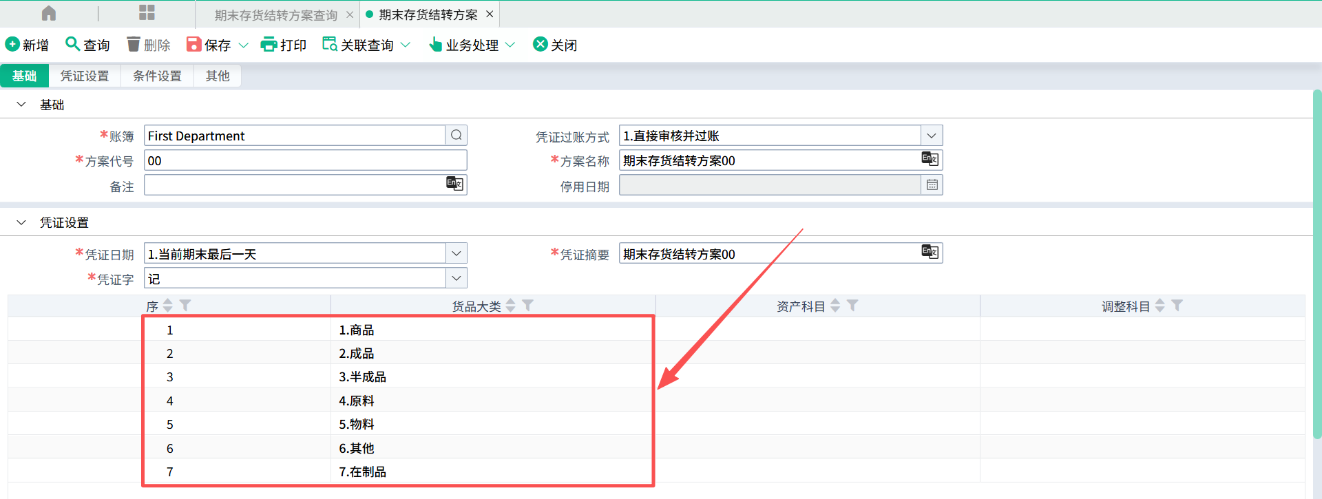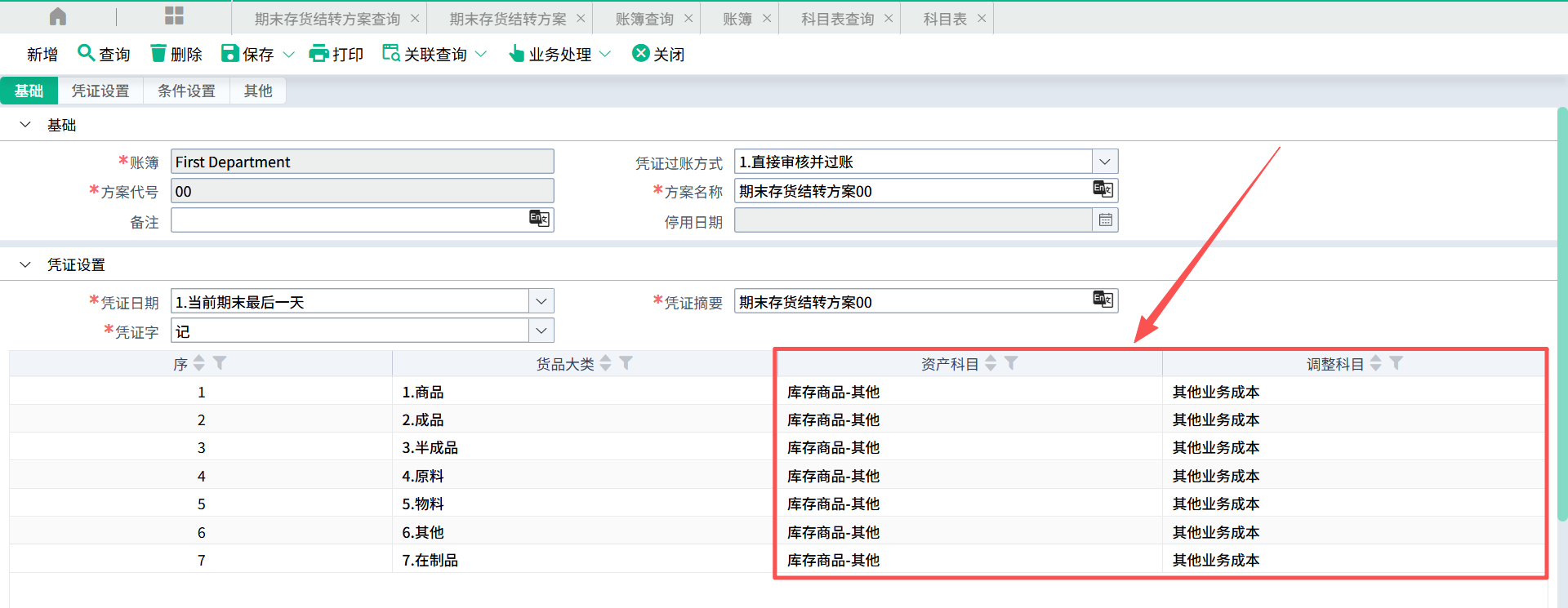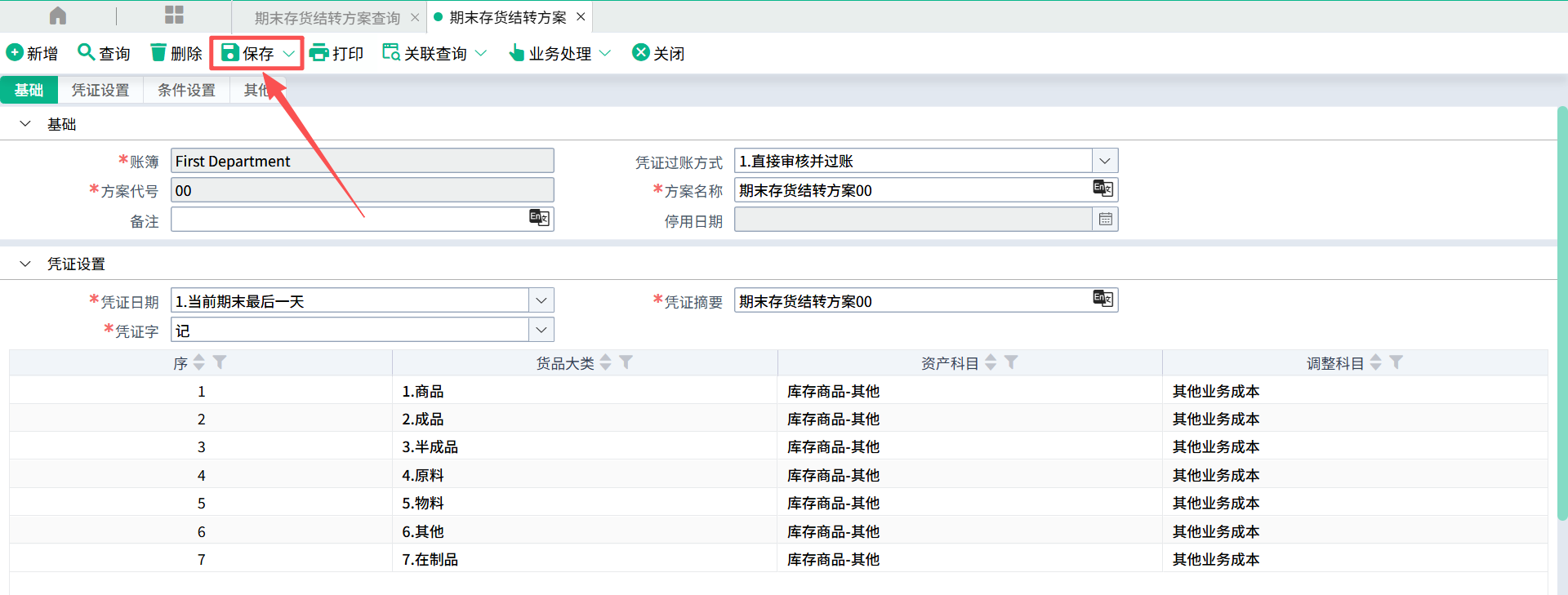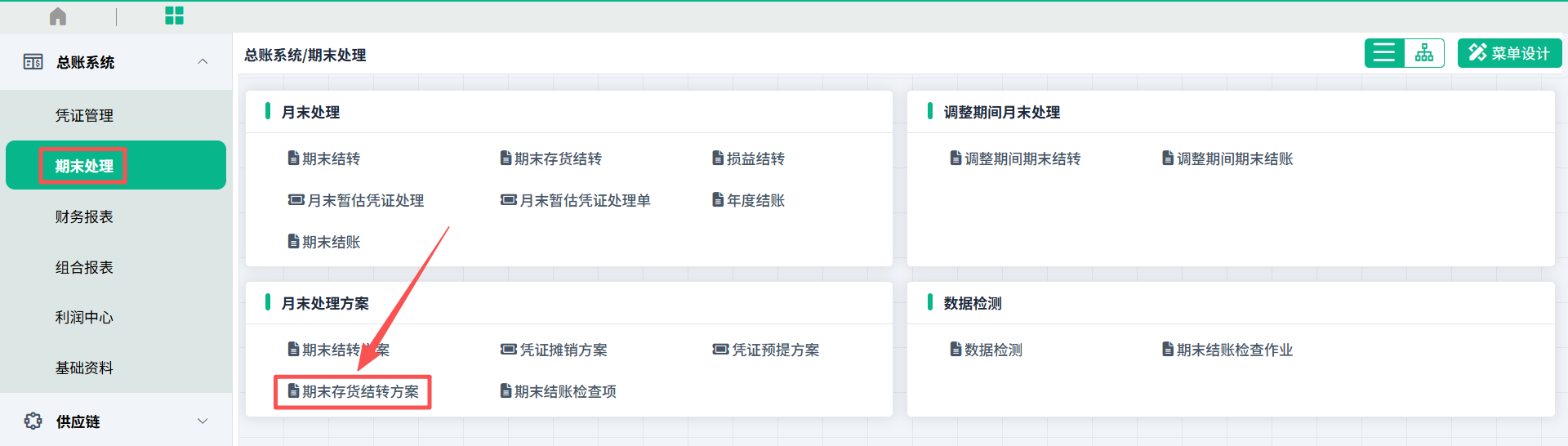 期末存货结转的流程:期末存货结转方案-期末存货结转-生成结转凭证。