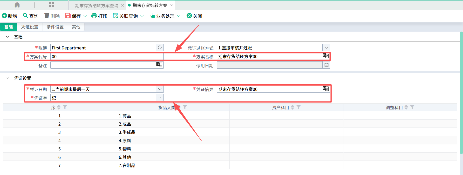 凭证日期:管控“期末存货结转生成凭证对应的凭证日期取值”,默认1.当前期末最后一天,若1月份做存货结转,则凭证日期取1-31;若选择2.当前期末倒数第二天,则凭证日期取1-30;若选择3.当前期末倒数第三天,则凭证日期取1-29