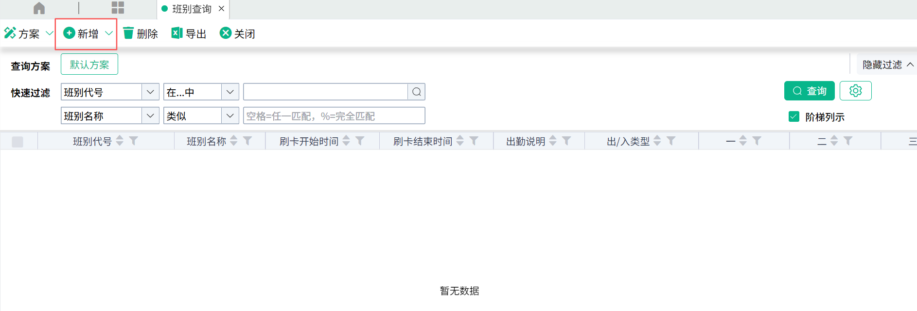 1、新增班别