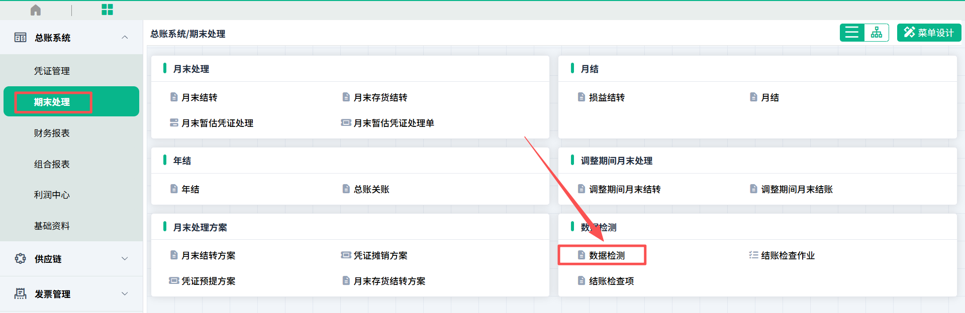 为了管理总账数据的完整性,在使用系统时会严格按照系统参数或设置进行控制操作, 但遇上其他因素的情况下,会有可能引起数据的异常。如一旦源头数据出现异常,就 会引起报表及后续引用取数产生不正确。因此,在应用总账系统时,会建议用户定期 对总账数据进行检测,及时发现异常及时处理。