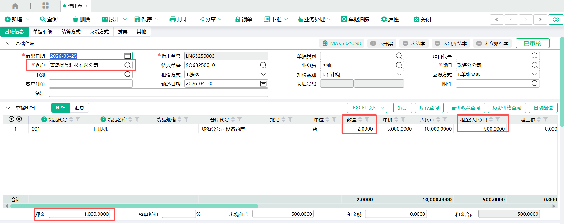 【受订单】→【借出单】 →【出库申请单】 → 【出货送检】/ 【销货单】