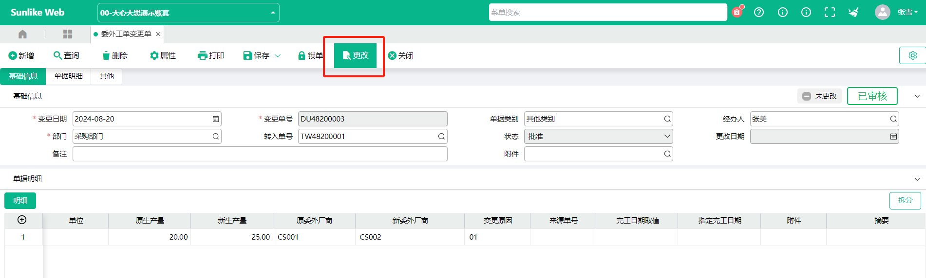 委外变更单