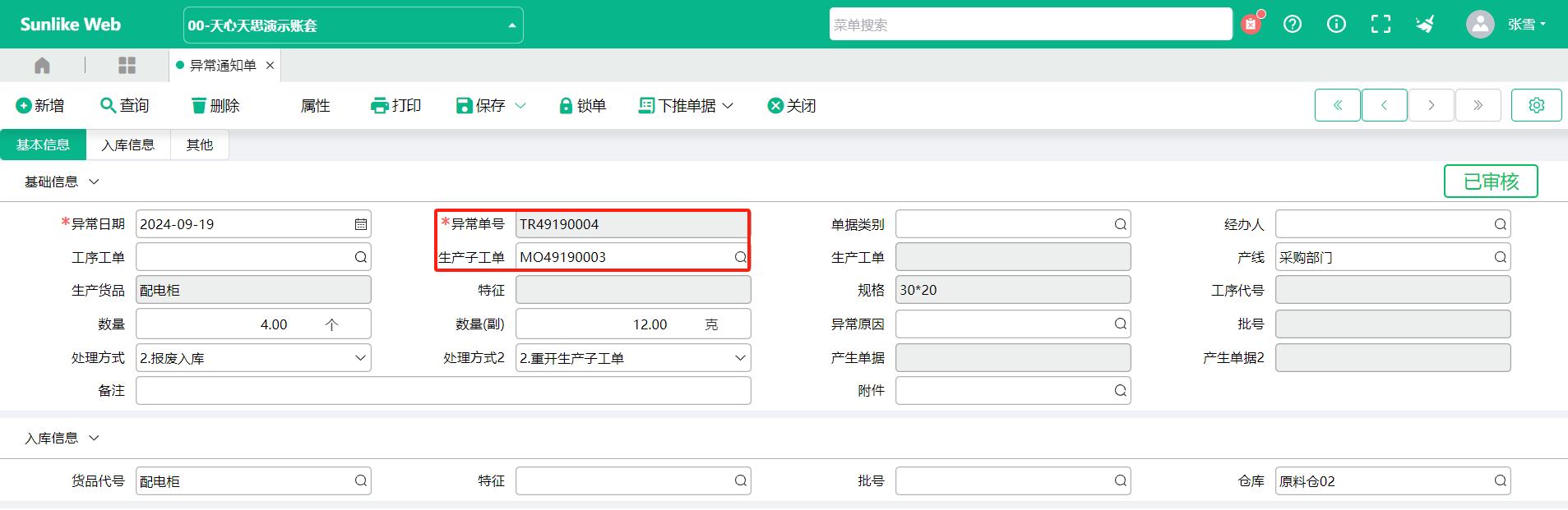 4、工序报工单自动生成【异常通知单】操作示例