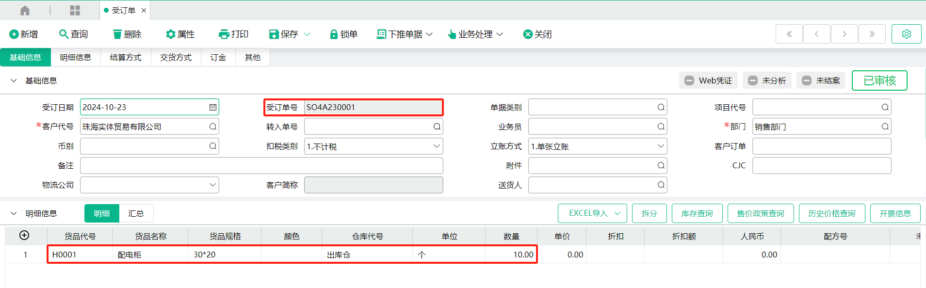 1、转入单号【受订单】操作示例